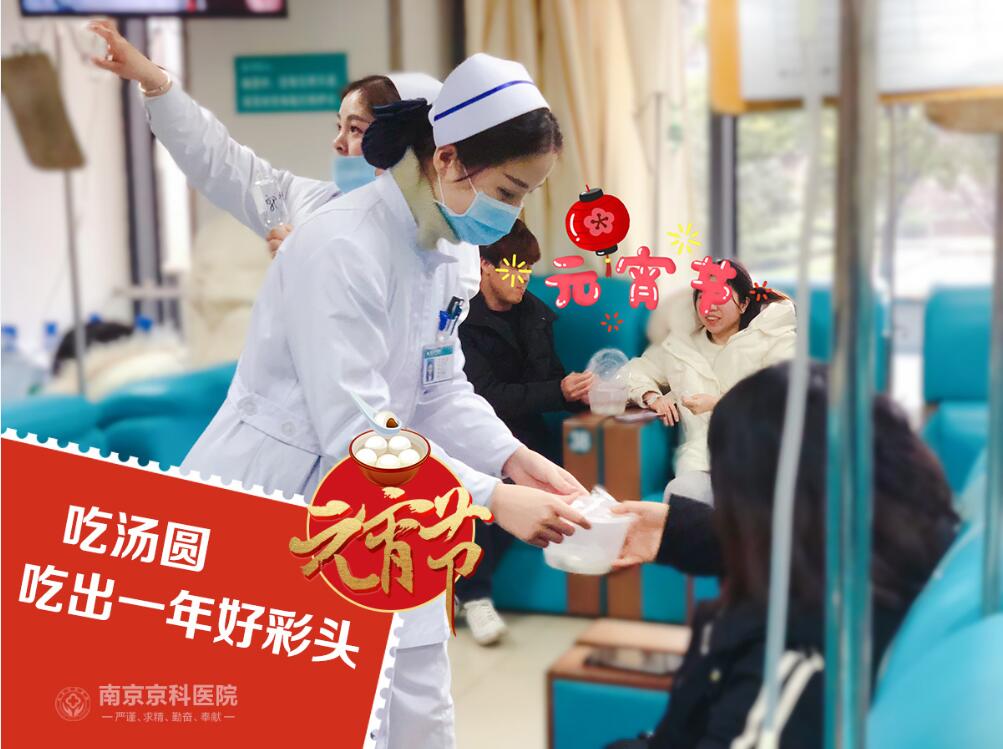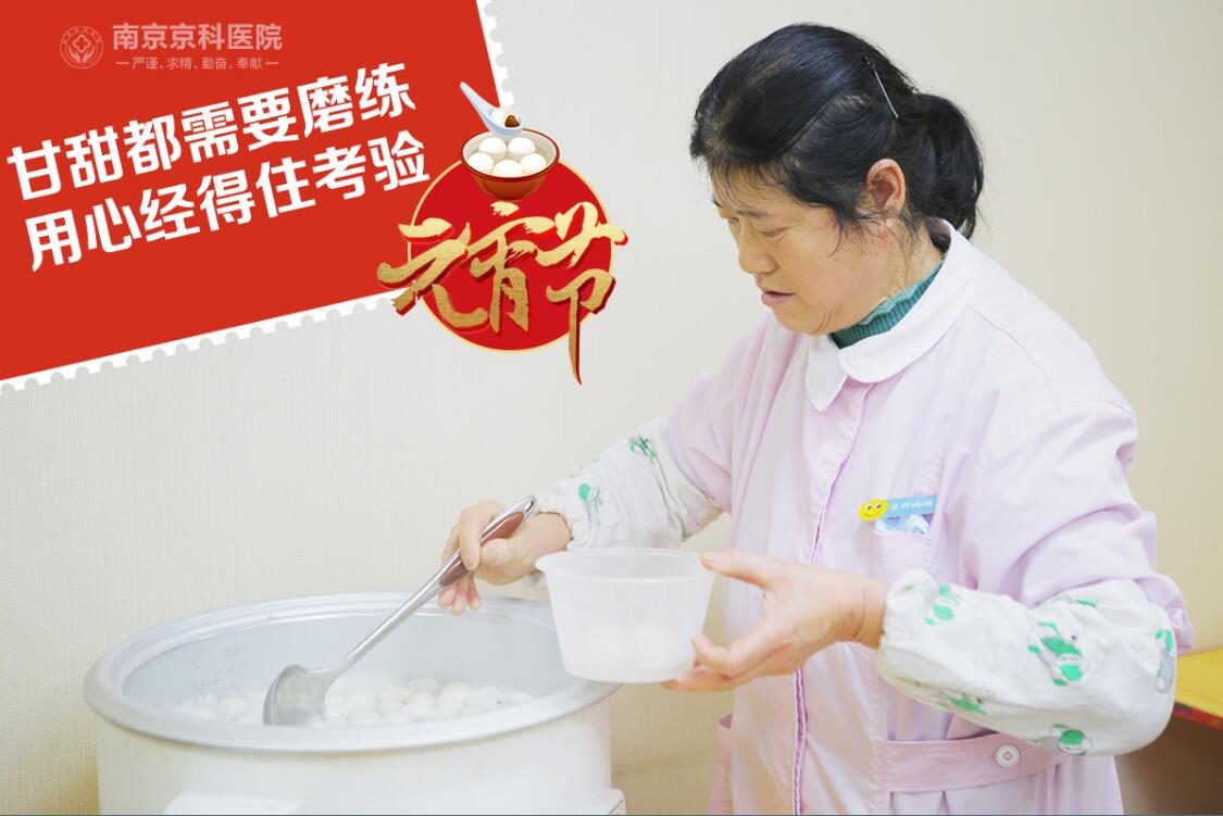 大家都沉浸在节日的欢乐当中,有的三五结伴猜灯谜,有的烧水,煮汤圆。“元宵节快乐!祝愿您早日康复,早日出院,也祝您的生活甜蜜,全家幸福!”元宵佳节,医院护理部蔡主任和护士将一碗碗热气腾腾的汤圆送到患者手中,并送上了自己的祝福。一碗汤圆,让原本安静的病房顿时热闹起来,多了更多的欢声和笑语。汤圆,团圆,医患一家亲,小小的汤圆甜到大家心里去,也让大家感受到节日的温暖。