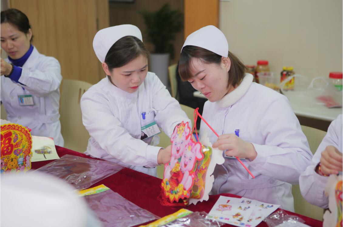 每逢元宵节,民间有挂灯、打灯、观灯习俗,故此节日也称灯节。活动开始前,医院蔡主任介绍了关于灯笼的传说,带动了现场的气氛,大家都动起手来,分工合力DIY制作灯笼,共同庆祝节日的到来,相互帮助相互学习其乐融融,经过一个多小时的努力,现场挂满了五彩缤纷的灯笼。这不仅展现了医务工作者的智慧巧手,更重要的是在制作的过程中让大家都能感受节日的气氛,在观赏中感受绘制的乐趣。有的将灯笼待会自己科室同小伙伴一同赏玩,有的将自己亲手做的灯笼送给了前来就诊的患者的孩子,小朋友们收到可爱的灯笼高兴极了。